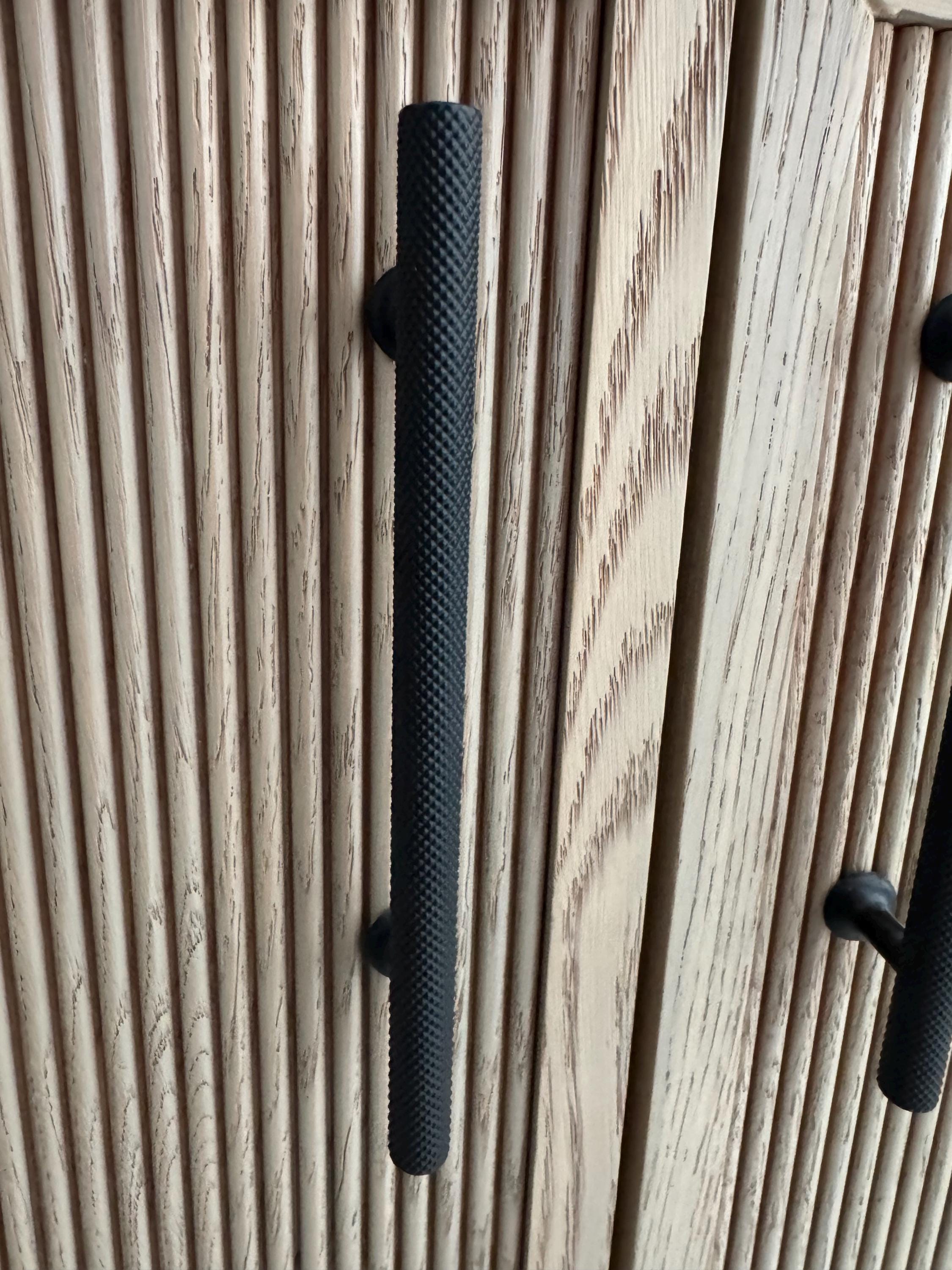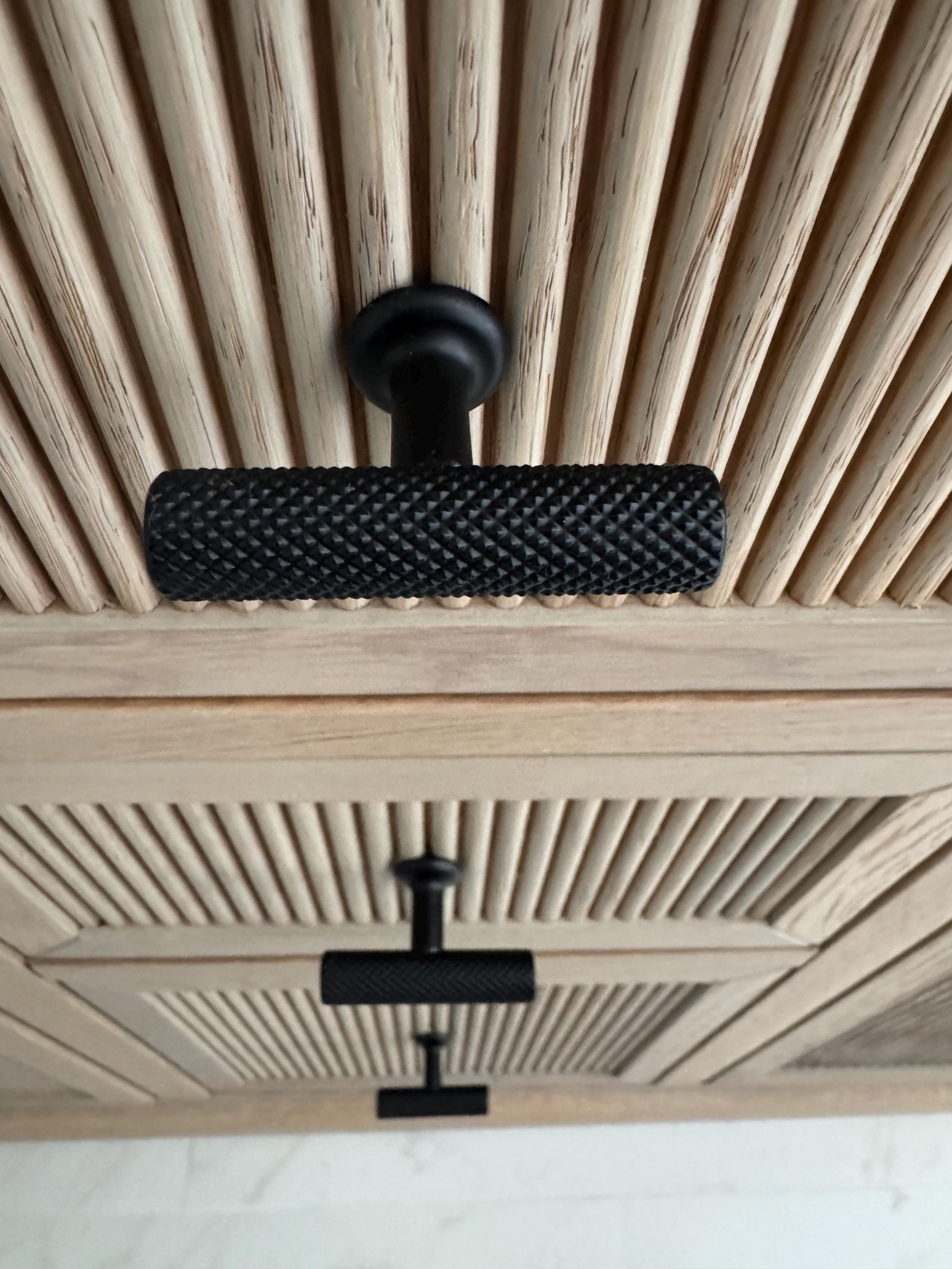 We recently redid our bathroom and needed new handles for both our vanity and cabinet. These pulls are absolutely stunning—simple yet elegant, beautifully made, and the textured design adds such a nice touch. We ordered the Knurled Solid T Bar Handle in Zinc Alloys in both black and gold, and they look incredible. Kulpanya Handles was also very responsive and great with communication, which made the whole process even better. Highly recommend!
