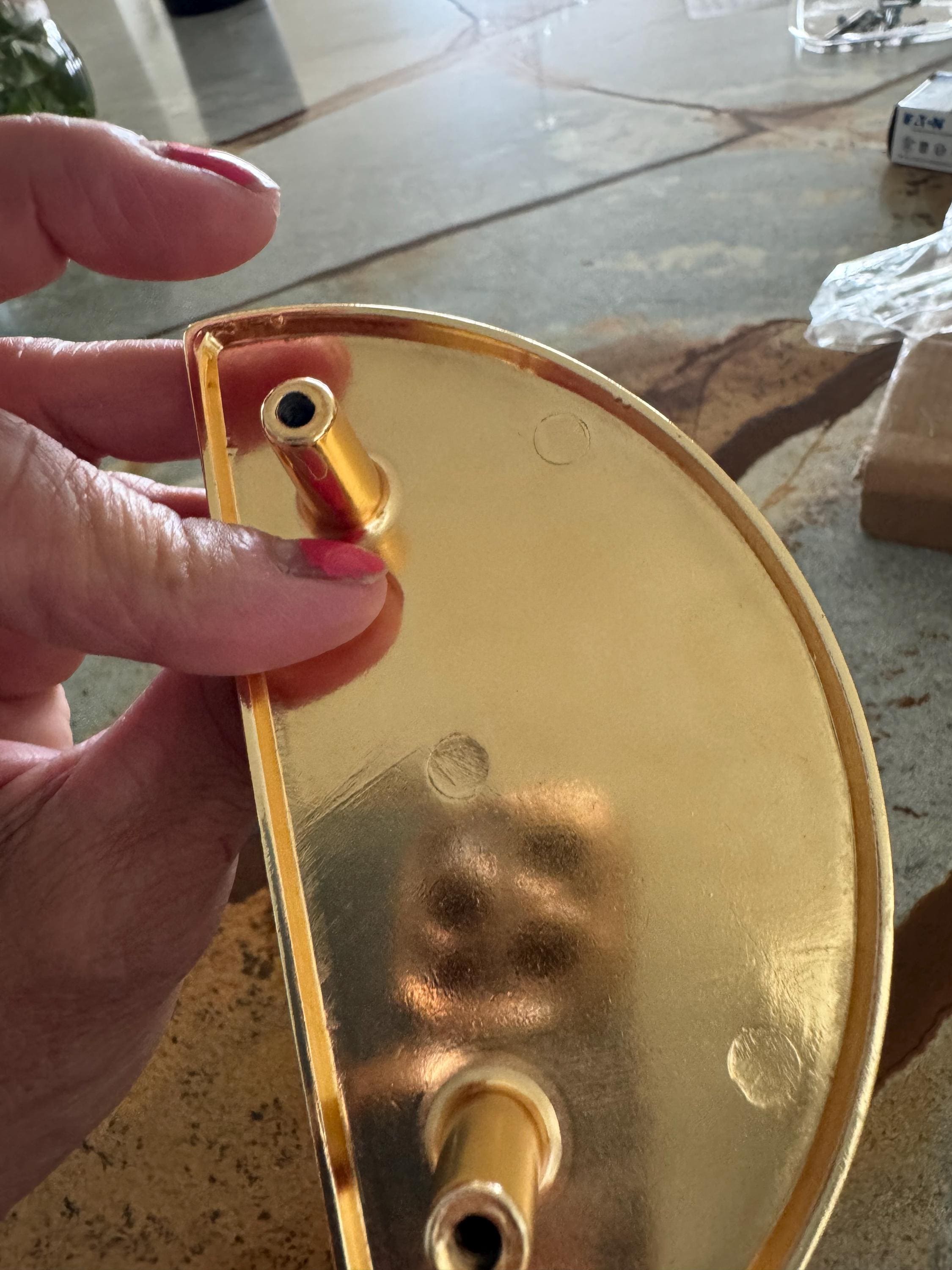 Need to update market place. I received the handles and they are poor quality. The gold finish is a bad spray on finish or looks like it anyway. I think the photos and the product don’t reflect reality. After I requested a refund the shop owner argues over the review and goes on and on about production in Turkey. That may be the case but it’s still poor quality. I outfit homes and do lots of unique hardware purchases, this is the first I’ve received something so bad. The gold is so bad these are just awful look like something out of a cheap gumball machine